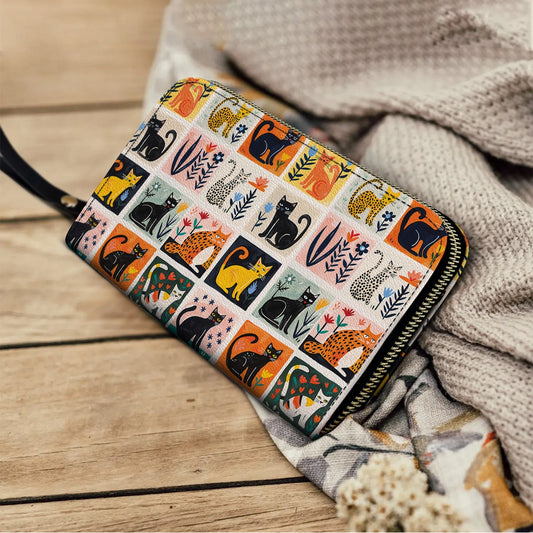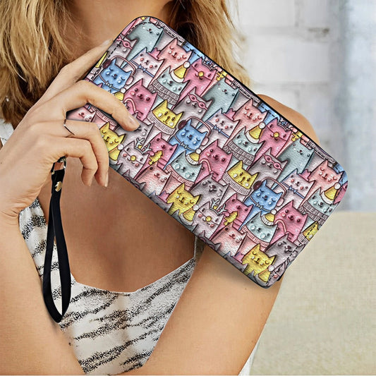 Shineful Leather Clutch Purse With Wristlet Strap Handle Cat 3D