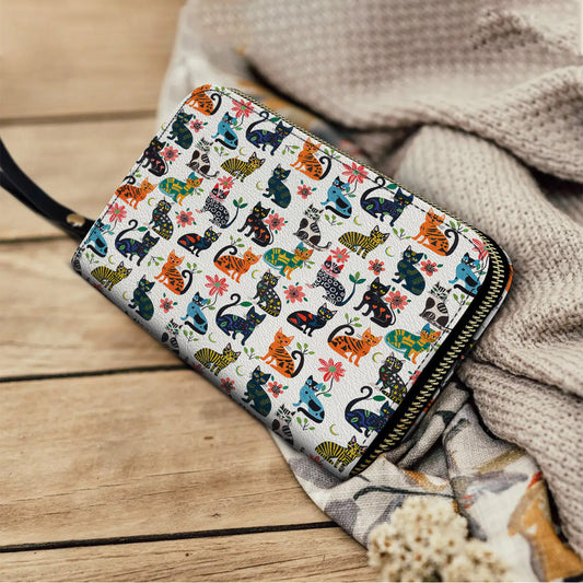 Shineful Leather Clutch Purse With Wristlet Strap Handle Cat Playful Paws