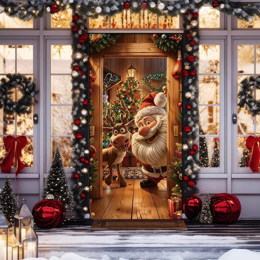 Shineful Door Cover Santa & Reindeer Holiday (3x6 ft)