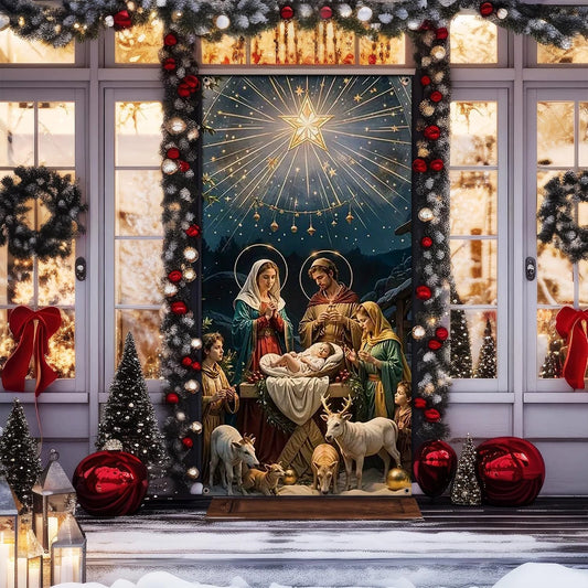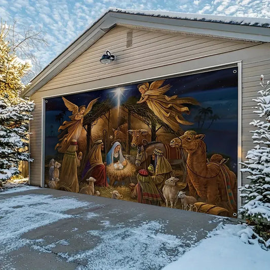 Shineful Garage Door Banner Decoration The Holy Nativity