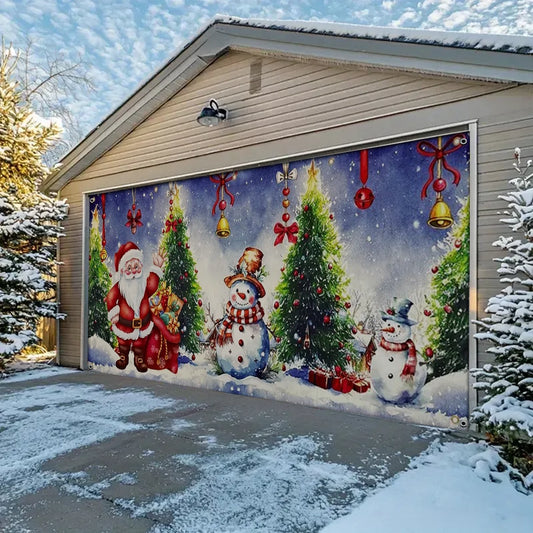 Shineful Garage Door Banner Decoration Holiday Cheer with Santa and Snowmen