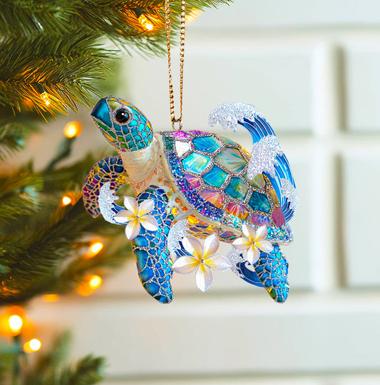 Shineful 2D Acrylic Ornament Twinkling Plumeria Sea Turtle