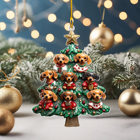 Shineful 2D Acrylic Ornament Twinkle Dachshund Christmas Tree