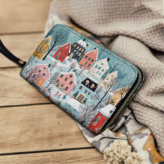 Shineful Leather Clutch Purse With Wristlet Strap Handle Christmas Winter Wonderland