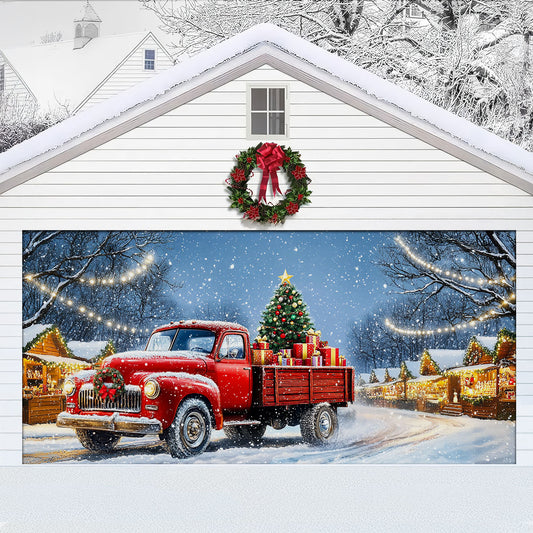 Shineful Garage Door Banner Decoration Red Truck Holiday