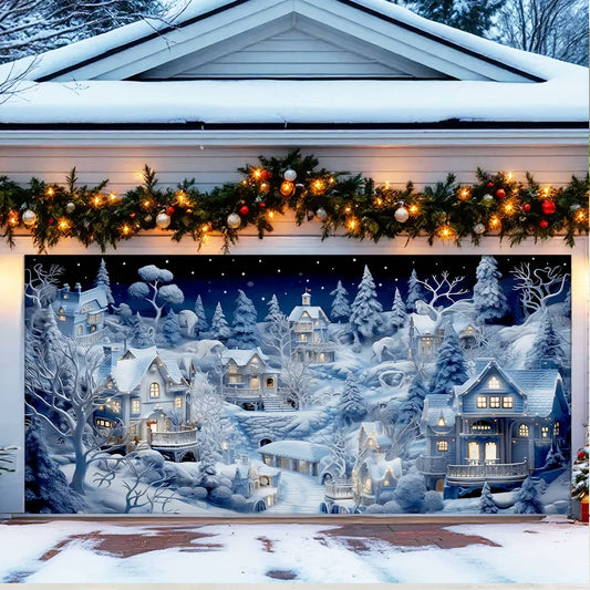 Shineful Garage Door Banner Decoration - Snowy Village Glow
