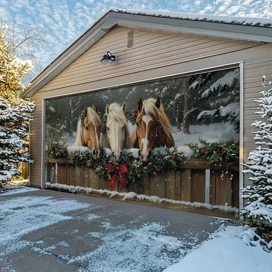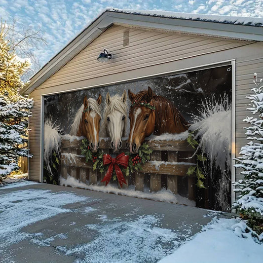 Shineful Garage Door Banner Decoration Horses in Holiday Splendor