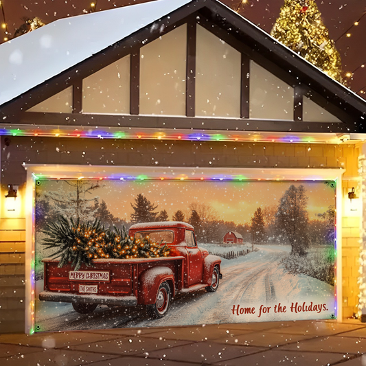 Shineful Personalized Garage Door Banner Decoration Vintage Red Truck Christmas Delight