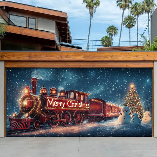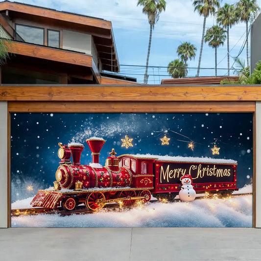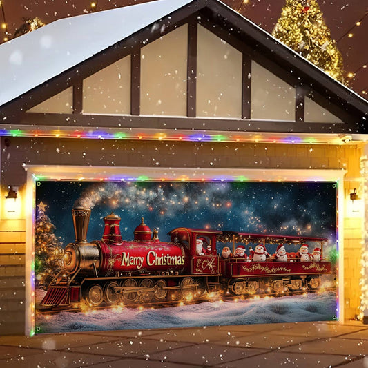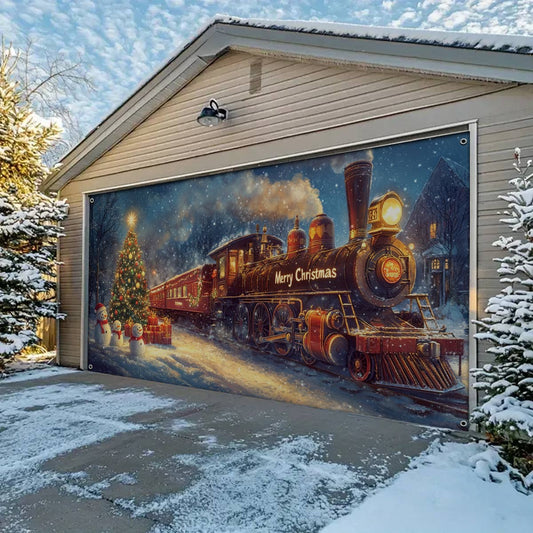 Shineful Garage Door Banner Decoration Merry Christmas Steam Engine