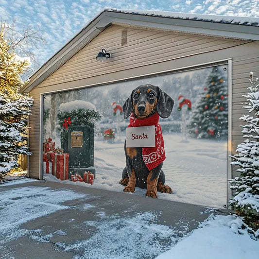 Shineful Garage Door Banner Decoration Dachshund Christmas Postmaster