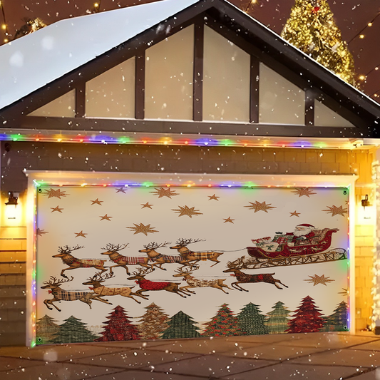 Shineful Garage Door Banner Decoration Magical Santa Sleigh