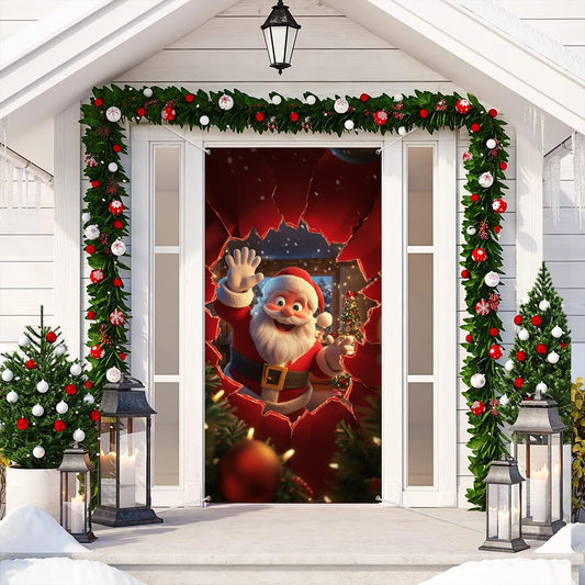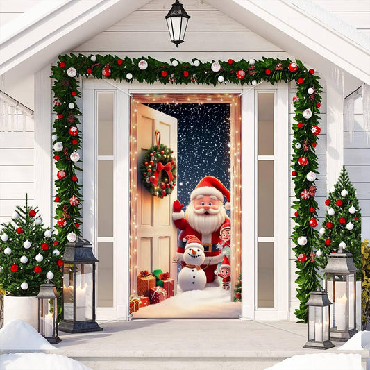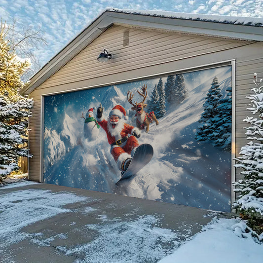 Shineful Garage Door Banner Decoration - Santa Snowboarding