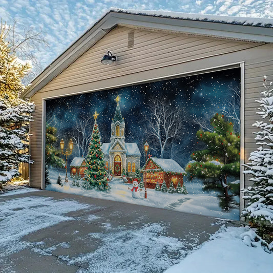 Shineful Garage Door Banner Decoration - Christmas Church Night