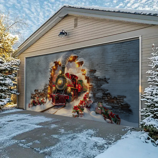 Shineful Garage Door Banner Decoration - Christmas Train 3D