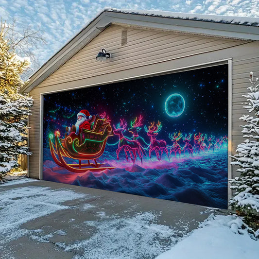 Shineful Garage Door Banner Decoration - Neon Santa Sleigh