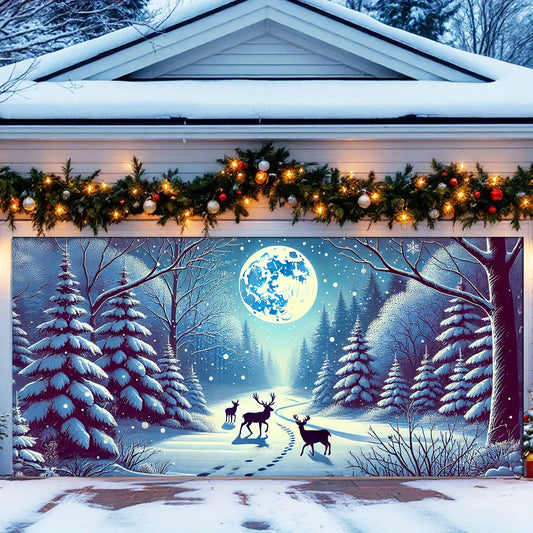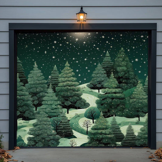 Shineful Garage Door Banner Decoration Snowy Forest Elegance