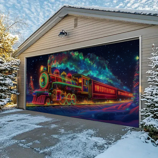 Shineful Garage Door Banner Decoration - Neon Christmas Train