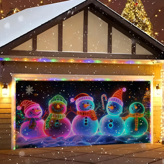 Shineful Garage Door Banner Decoration - Neon Snowman Family 3D