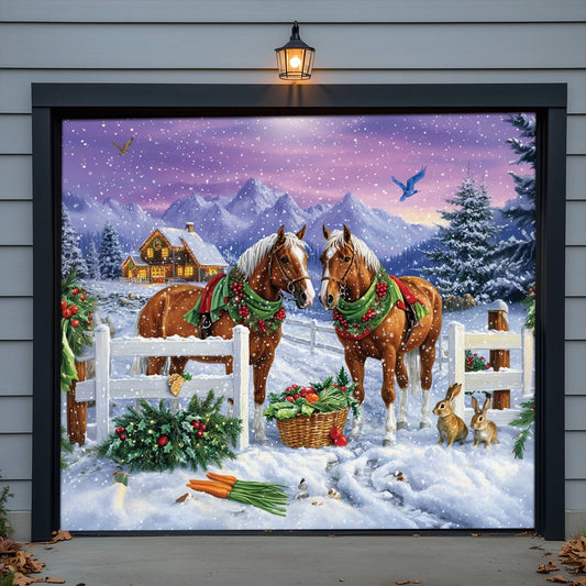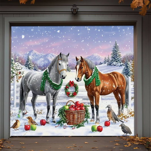 Shineful Garage Door Banner Decoration Festive Horses in Winter Wonderland