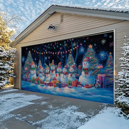 Shineful Garage Door Banner Decoration - Festive Snowman Family