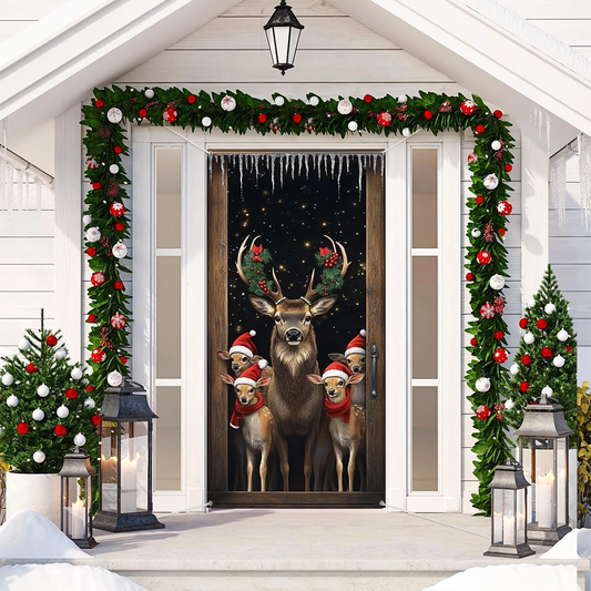 Shineful Door Cover - Christmas Reindeer Gathering