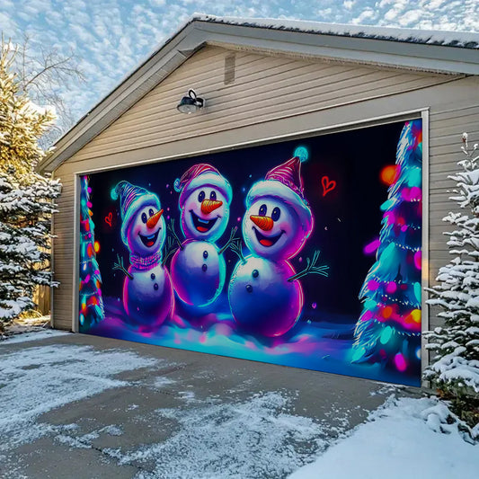 Shineful Garage Door Banner Decoration - Neon Snowman Trio
