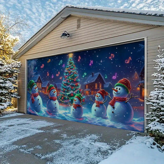 Shineful Garage Door Banner Decoration - Singing Snowman Christmas