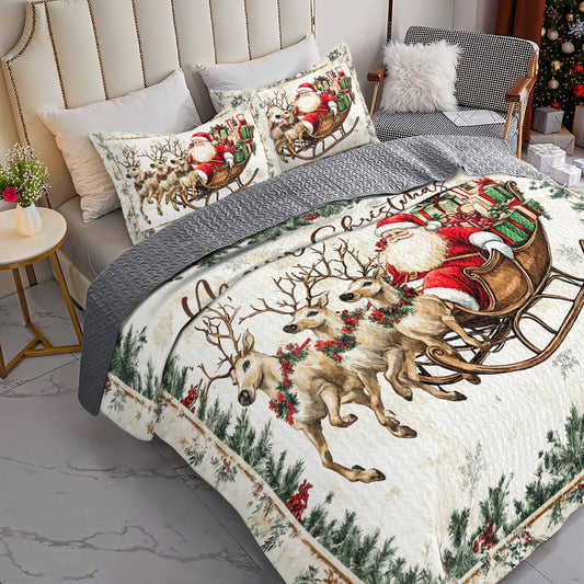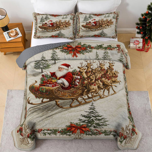 Shineful All Season Quilt 3-Piece Set A Santa In His Sleigh With Gentle Reindeers
