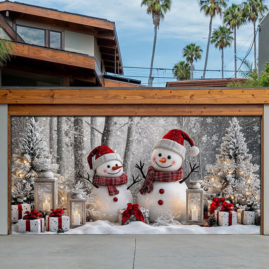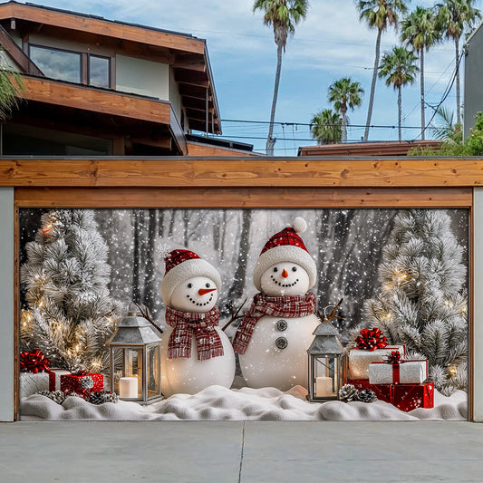 Shineful Garage Door Banner Decoration Winter Forest Happy Snowman Couple