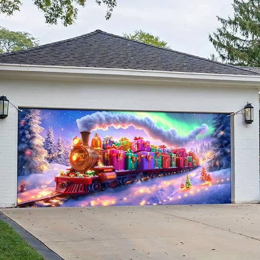 Shineful Garage Door Banner Decoration Festive Train Journey