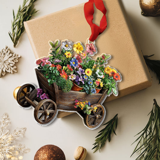 Shineful 2D Acrylic Ornament - Blooming Garden Cart