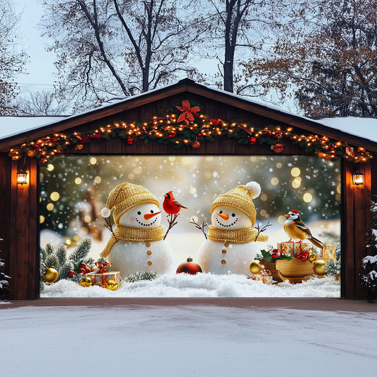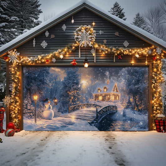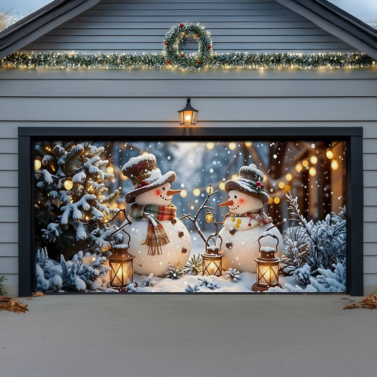 Shineful Garage Door Banner Decoration Twilight Snowman Lantern Festival