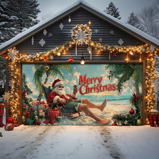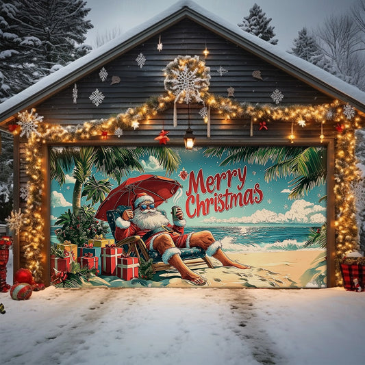 Shineful Garage Door Banner Decoration Seaside Relaxing Santa