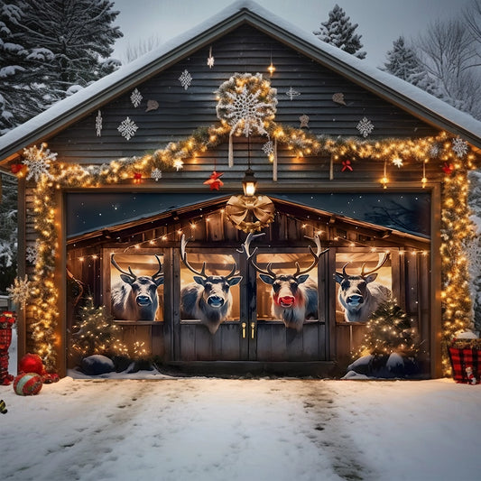 Shineful Garage Door Banner Decoration Reindeer Retreat Holiday Charm