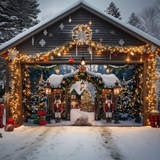 Shineful Garage Door Banner Decoration Snowy Nutcracker Celebration
