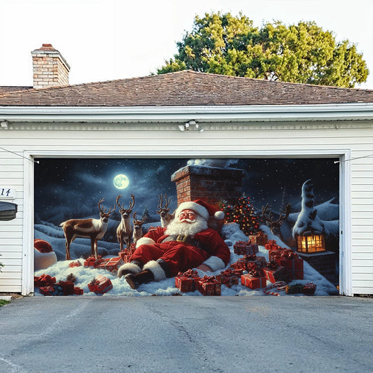 Shineful Garage Door Banner Decoration Chimney Fail: Santa’s Snowy Chill