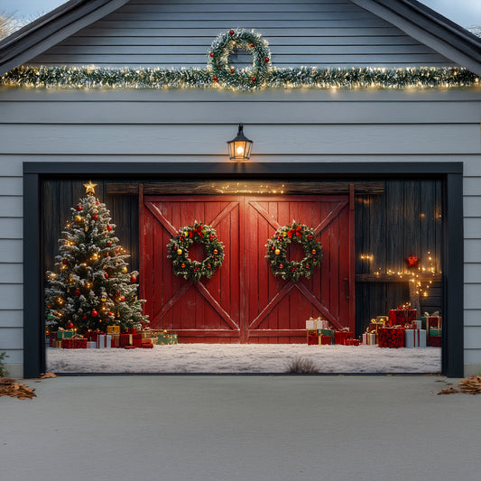 Shineful Garage Door Banner Decoration Christmas Red Barn