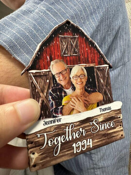Red Barn Christmas Family Custom Photo - Personalized Photo. Acrylic Ornament