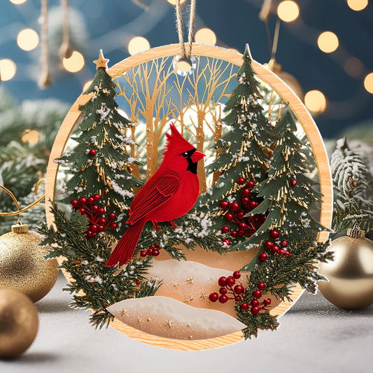 Shineful 2D Acrylic Ornament - Evergreen Cardinal