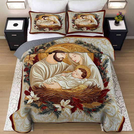 Shineful All Season Quilt 3-Piece Set Jesus Merry And Bright