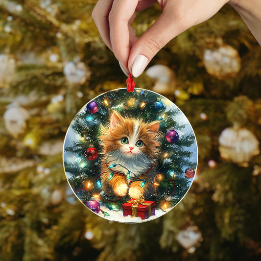 Shineful Acrylic Ornament Under the Tree with Christmas Kitty
