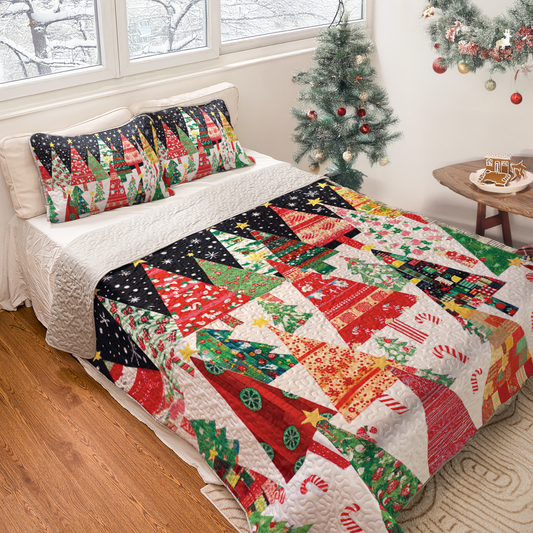 Shineful All Season Quilt 3-Piece Set Patchwork Christmas Tree