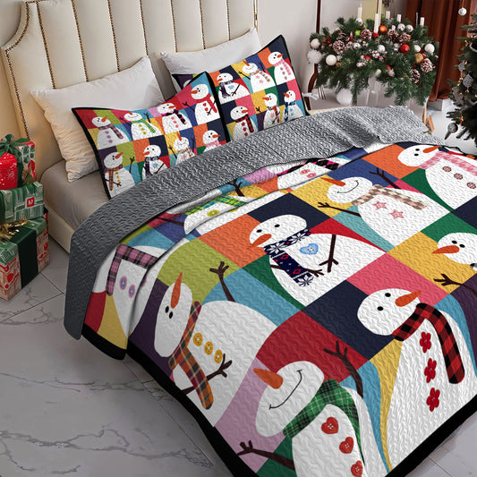 Shineful All Season Quilt 3-Piece Set Colorful Snowman Joy