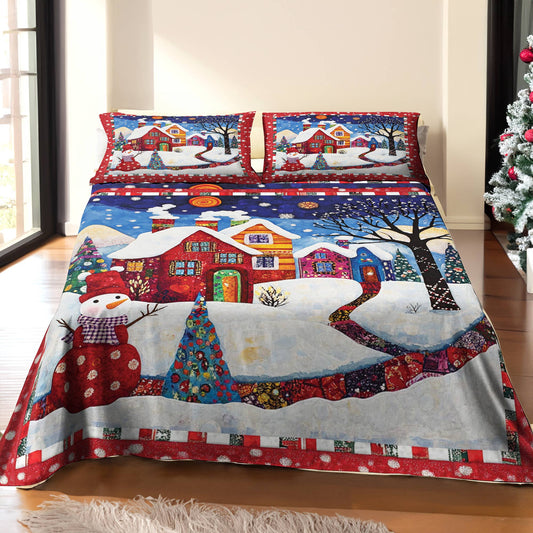 Shineful 4-Piece Bed Sheet Set Merry Snowman