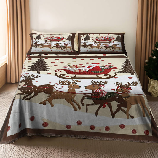 Shineful 4-Piece Bed Sheet Set Cozy Santa Claus With Reindeer Pulling His Sleigh Full Of Gifts