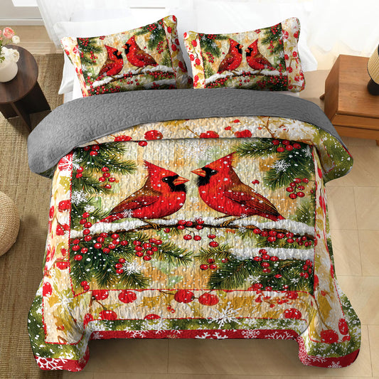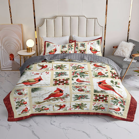 Shineful All Season Quilt 3-Piece Set - Cardinal Winter Warmth