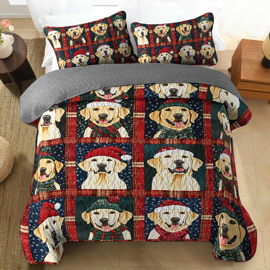 Shineful All Season Quilt 3-Piece Set Golden Retriever Christmas
