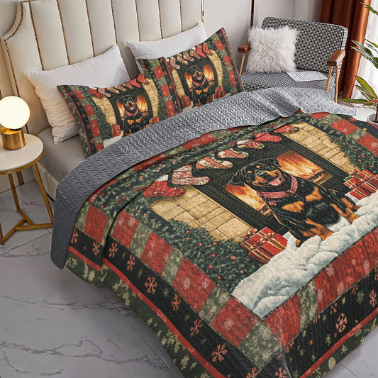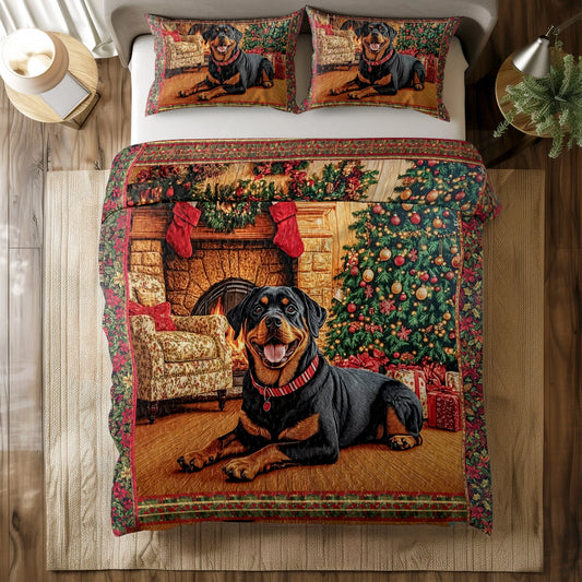 Shineful All Season Quilt 3-Piece Set - Rottweiler's Christmas Cheer
