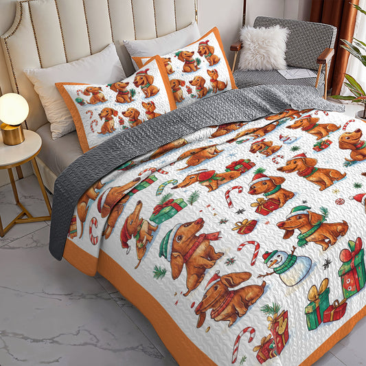 Shineful All Season Quilt 3-Piece Set Christmas Dachshund Pattern