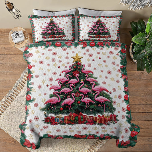 Shineful All Season Quilt 3-Piece Set Holiday Flamingo Wonderland